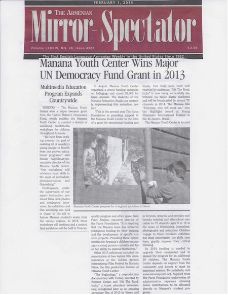 Armenian Mirror-Spectator Coverage of Manana Youth Center
