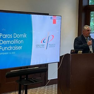 On September 15, 2022, an enthusiastic crowd gathered at the beautiful Birmingham Athletic Club to learn more about and to support The Paros Foundation’s Housing, After-school and vocational center building in Gyumri, Armenia. The event was generously hosted by Dr. & Mrs. Gary and Linda Assarian and Mr. & Mrs. Howard and Catherine Atesian.