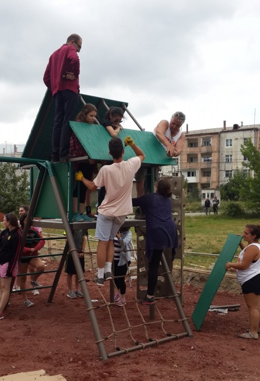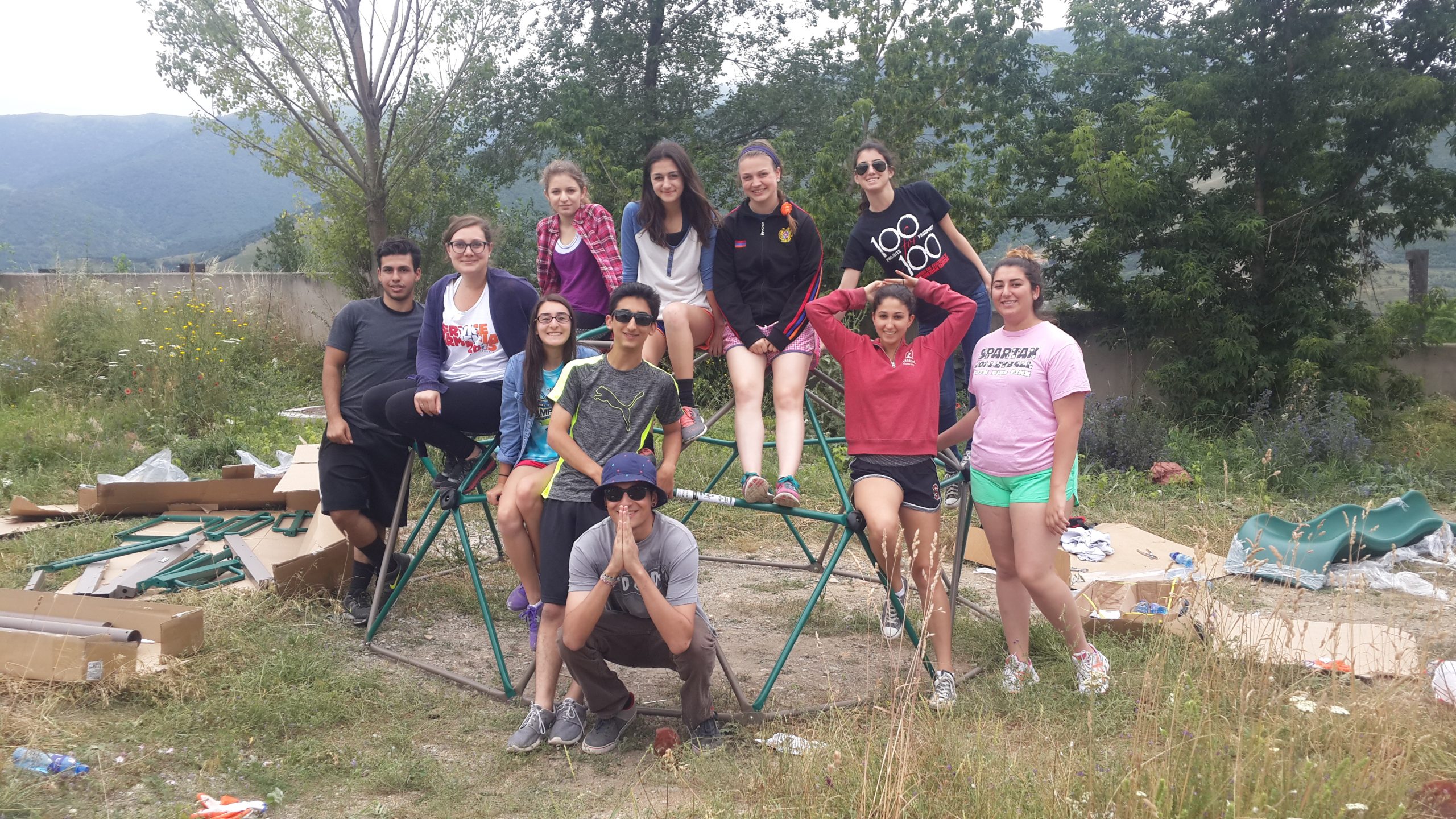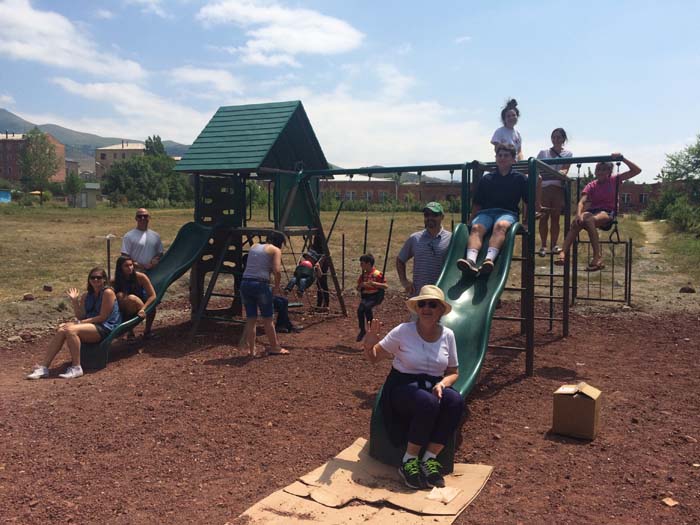ÂSERVICE Armenia volunteers spend the day assembling the play structures for the park as local children quickly gathered in anticipation of their new play area.