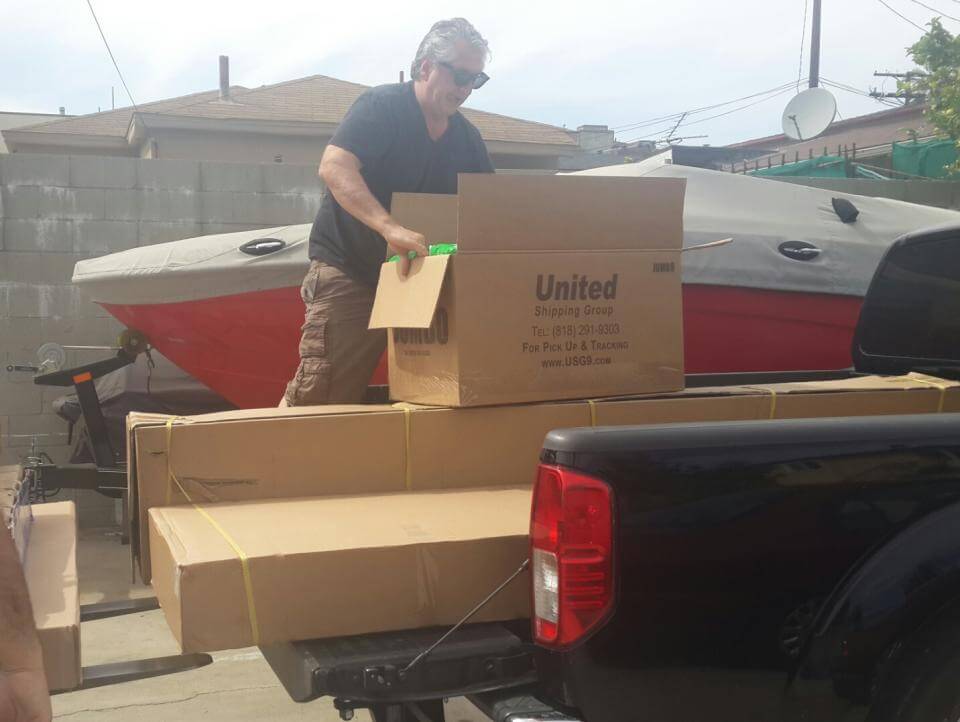 Peter Abajian and Narine Panosian, Paros Foundation Los Angeles-based staff purchase, pack and ship play structures bound for the Vanadzor park.