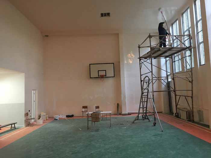 ÂRepairs and painting of the school's gym began today.