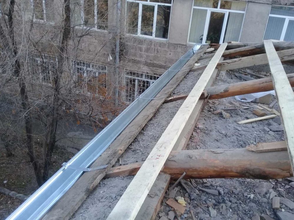 Renovation work has started back up again at School #154. The Dunaians Family has funded the renovation of the roof above the school's excercise room.