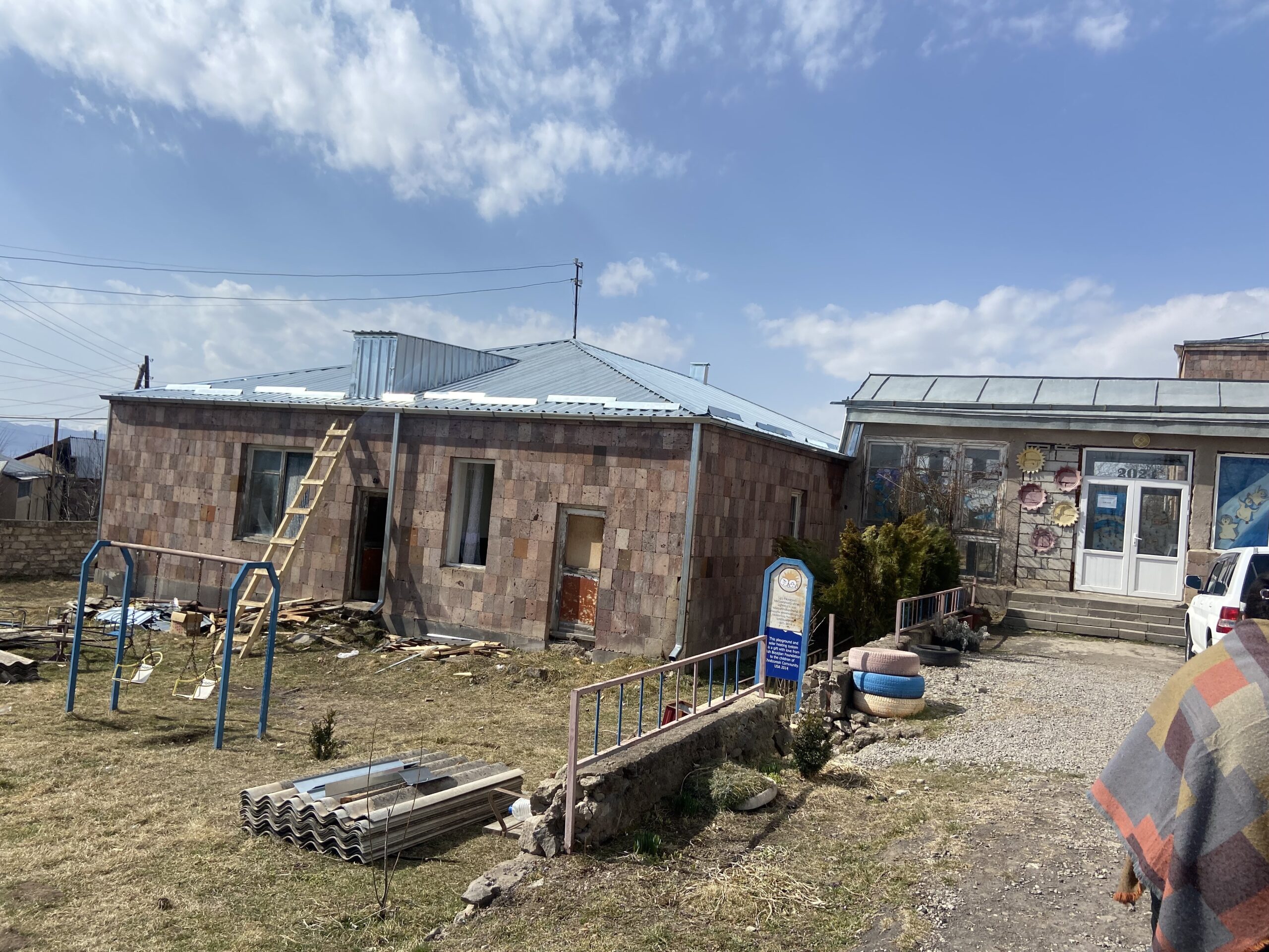 Today, renovations on the Khndzoresk Kindergarten began. The crew removed old roofing and is ready to continue renovations.