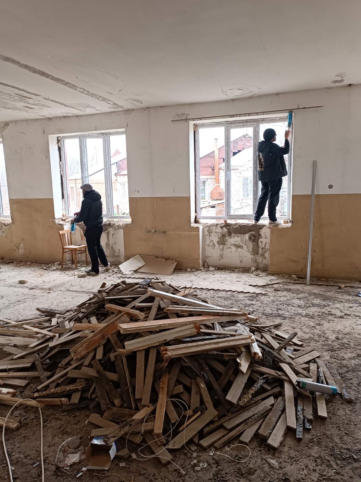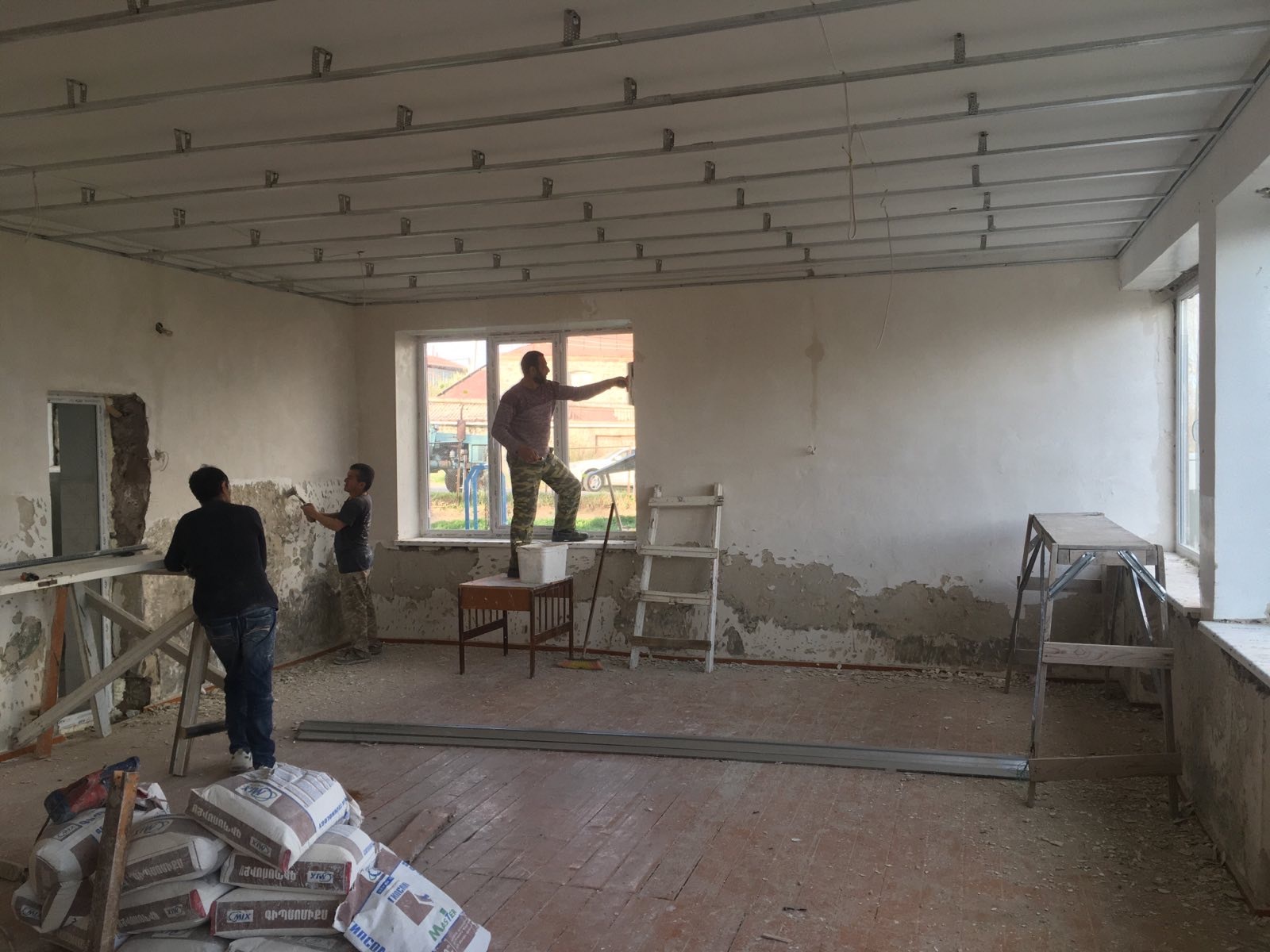 Work on the interior of the Khndzoresk Kindergarten has started with the crew removing old walls and flooring.