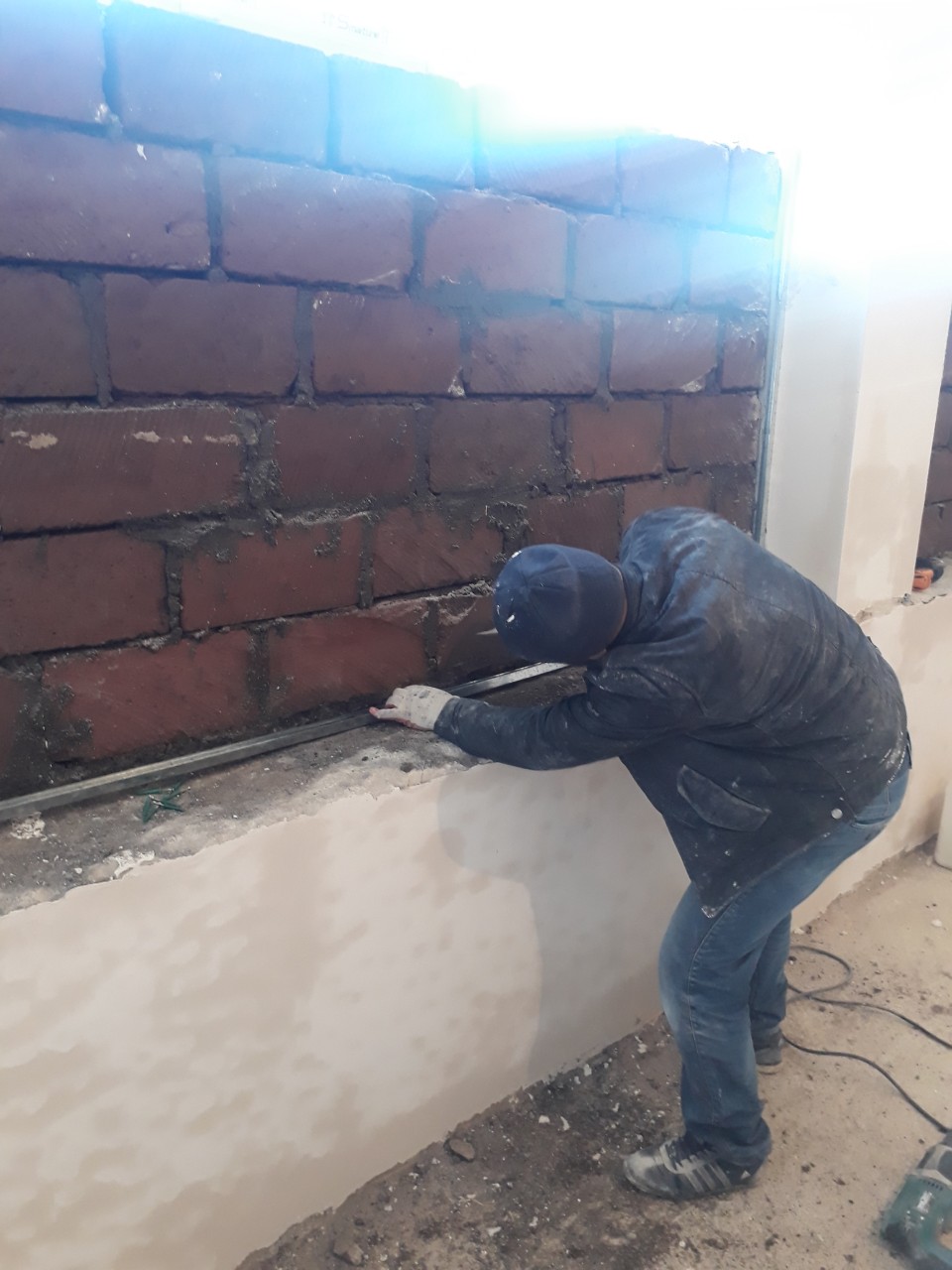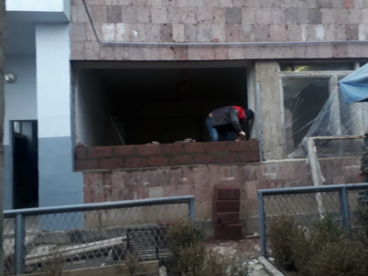 Work has began on both the heating system and the first floor renovation. The large first floor windows are being blocked smaller for added security from the potential of sniper fire.