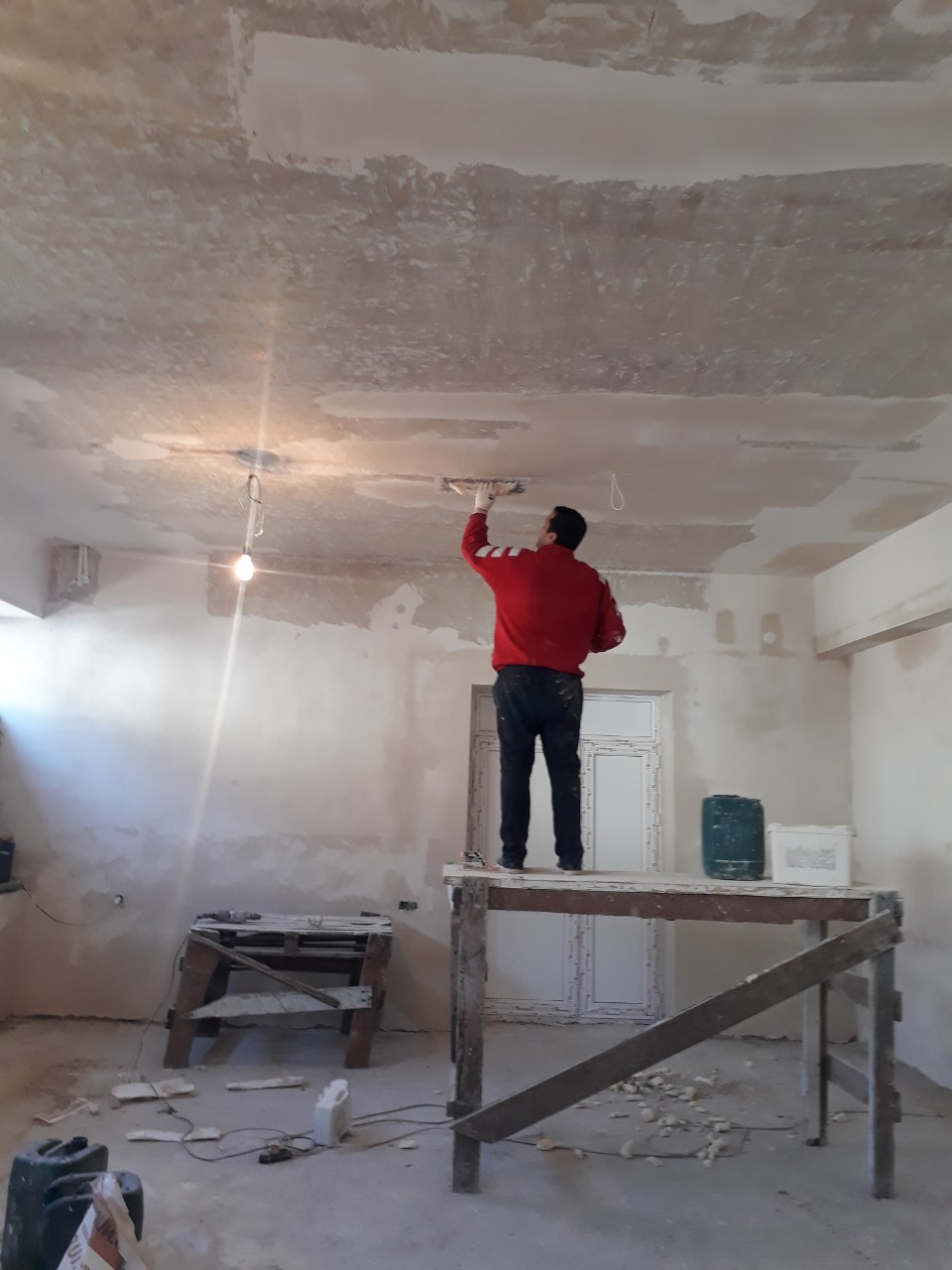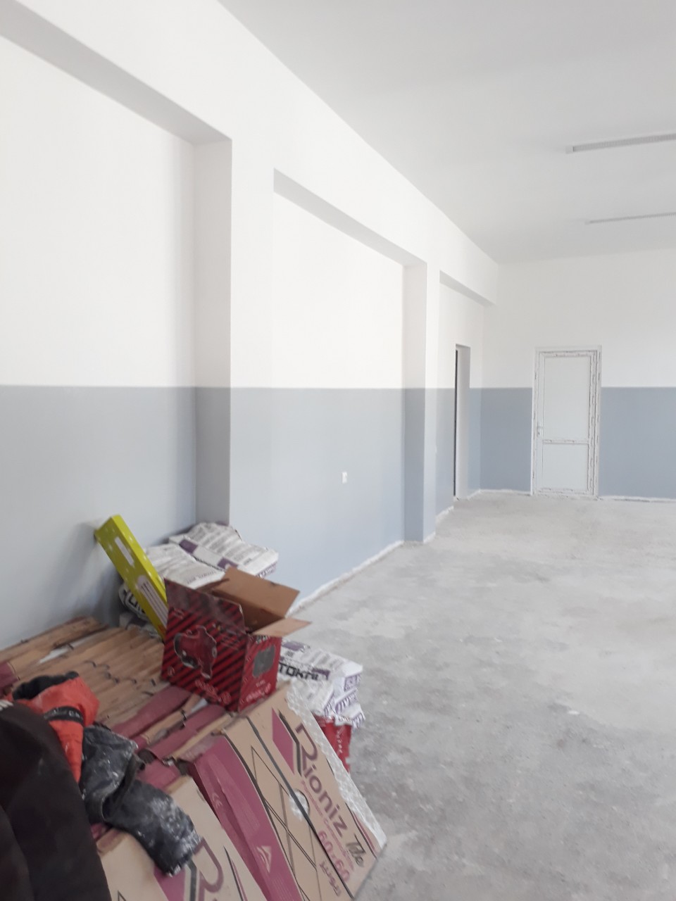 Work on the entire inside is completed. The first floor is ready for the new gym equipment.