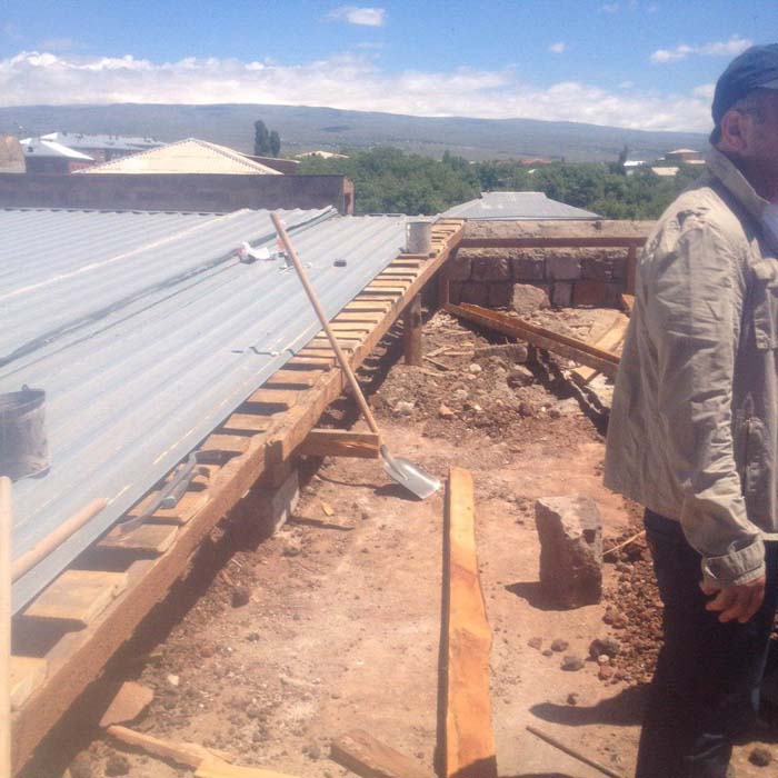 Thanks to the generous support of Vasken Ekmekjian and his family, funding is now available to begin the construction of the concert hall at the Talin Music School. After interviewing several contractors in Armenia, we chose our firm, and today they broke ground!
