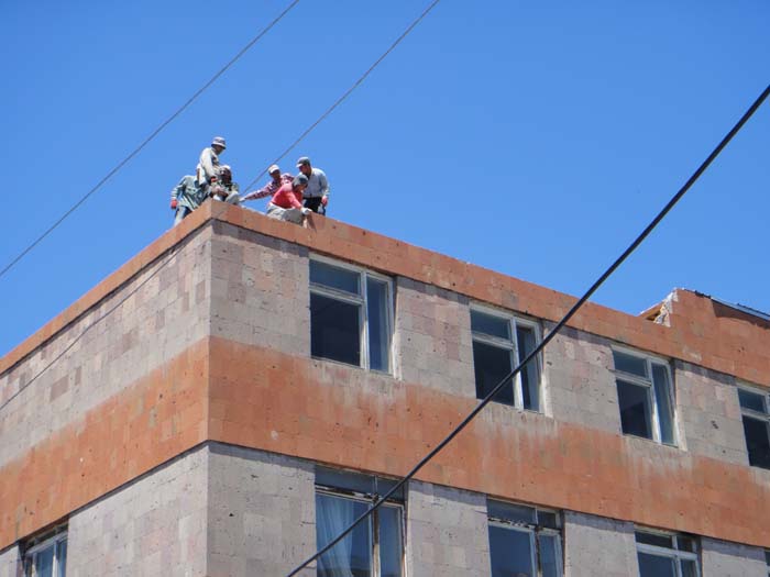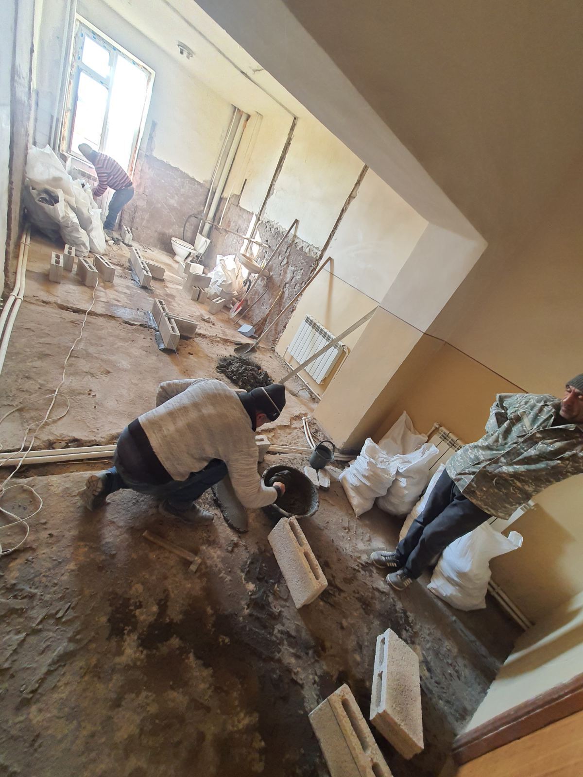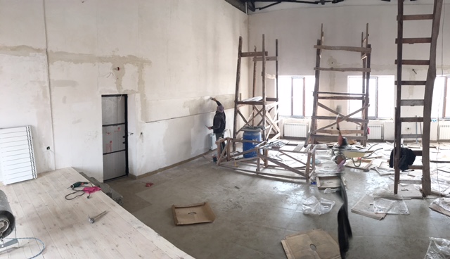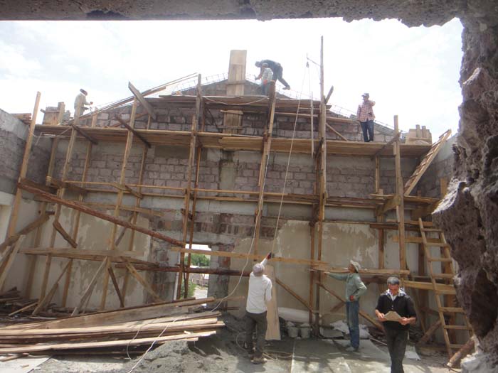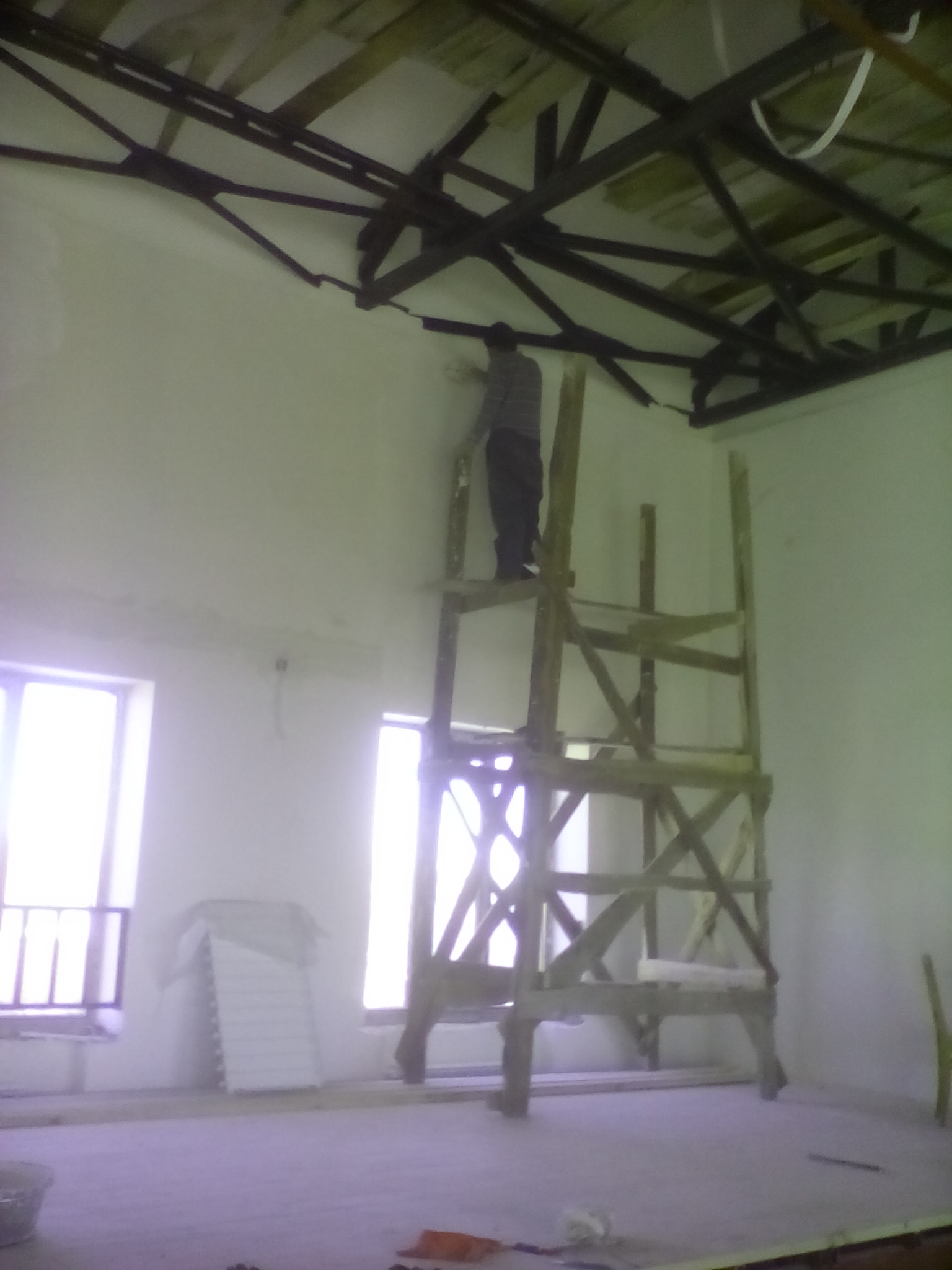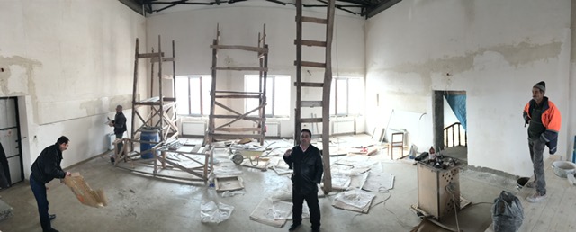 A foggy and snowy visit to the Talin Music School today showed what terrific progress the crew is making on the interior. The walls are being completed now and the painting work will begin soon.