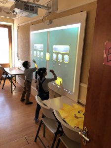 Students at Debi Arach competing to solve the math problems using our new SMART projectors.